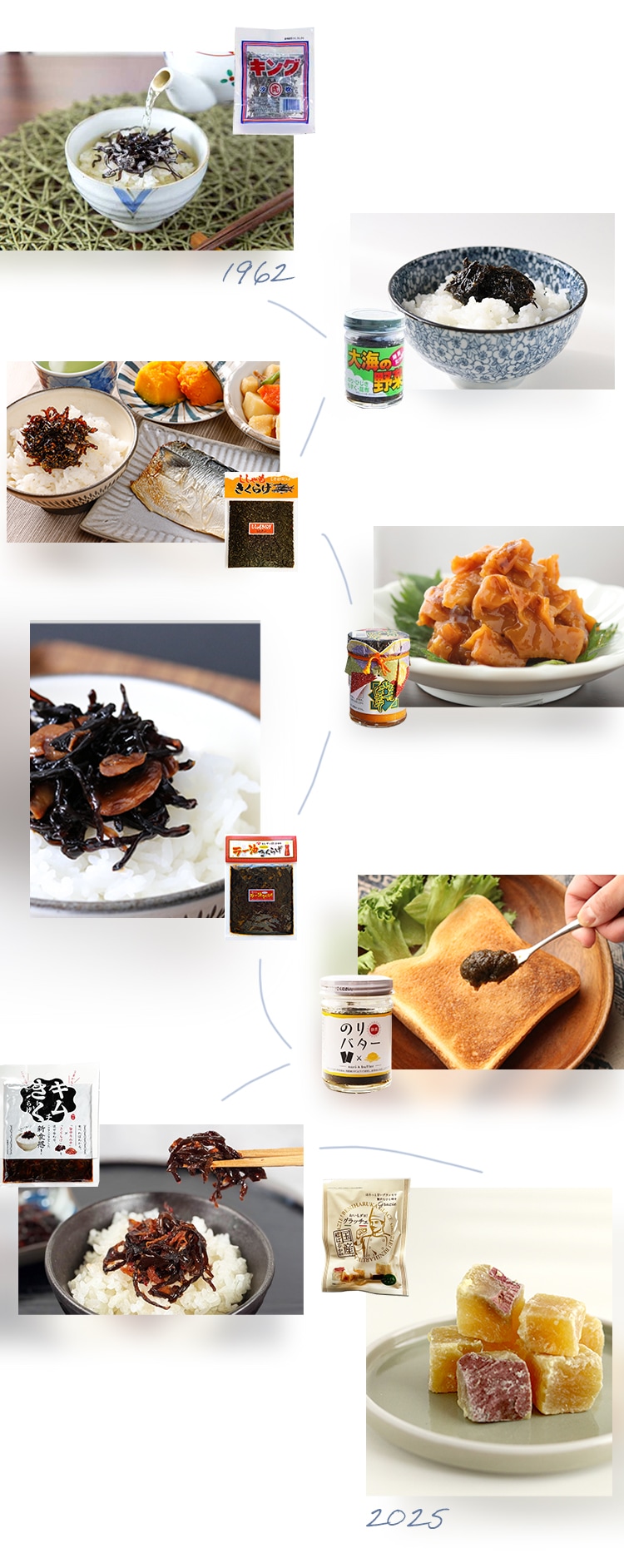 その調味を抑えながらも、深い旨みを生み出す生醤油を絶妙な調節で素材とかけ合わせることで絶品の佃煮ができあがります。